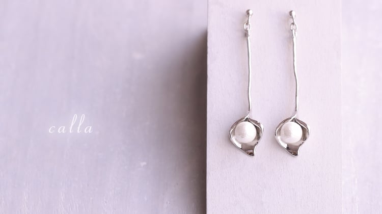 Calla 花弁に優しく包まれるように輝くパールがあしらわれたCalla。 シルバカラーのクールな印象の中にゆるぎない美しさが感じられる洗礼されたデザインです。 花弁や軸のエレガントな流線が、凛とした清らかな佇まいを。 縦のラインが、揺れ動くモチーフをより美しく、お顔周りをすっきりとした印象に。 アップスタイルとの相性も◎です。 ピアスポストは純チタン製。 金属アレルギーの方も安心してお使いいただけます。 モチーフとの接触を防ぎたい場合はポストパッドの併用がお勧めです。 (こちらの商品は『3mmサイズ』がお勧めです) ・ポストパッド https://sache.base.ec/items/79152270 【ご注意ください】 当店商品は1つ1つ手作業で制作している為、形に若干の差が出てしまう場合がございます。 ピアスでも左右の色や形等、全く同じに製作することができません。 膨らみや凹み、色、表面感、小傷に見えるもの、接続部の凸凹、歪み等ある場合がございますが不良品ではございません。 手作り製品の特性として、予めご了承いただけますようお願いいたします。 金属アレルギー対応ピアス専門店 ■SPEC ピアス金具:純チタンポスト 重さ:片側約1.1g サイズ:全長約4.3cm、最大幅約1cm、コットンパール約6mm 規格:純チタン、ブラス、コットンパール ■ピアス金具ガイド(必ずご確認ください) https://sache.base.ec/blog/2023/10/12/134827 ■ラッピングはこちら https://sache.base.ec/categories/5481370
