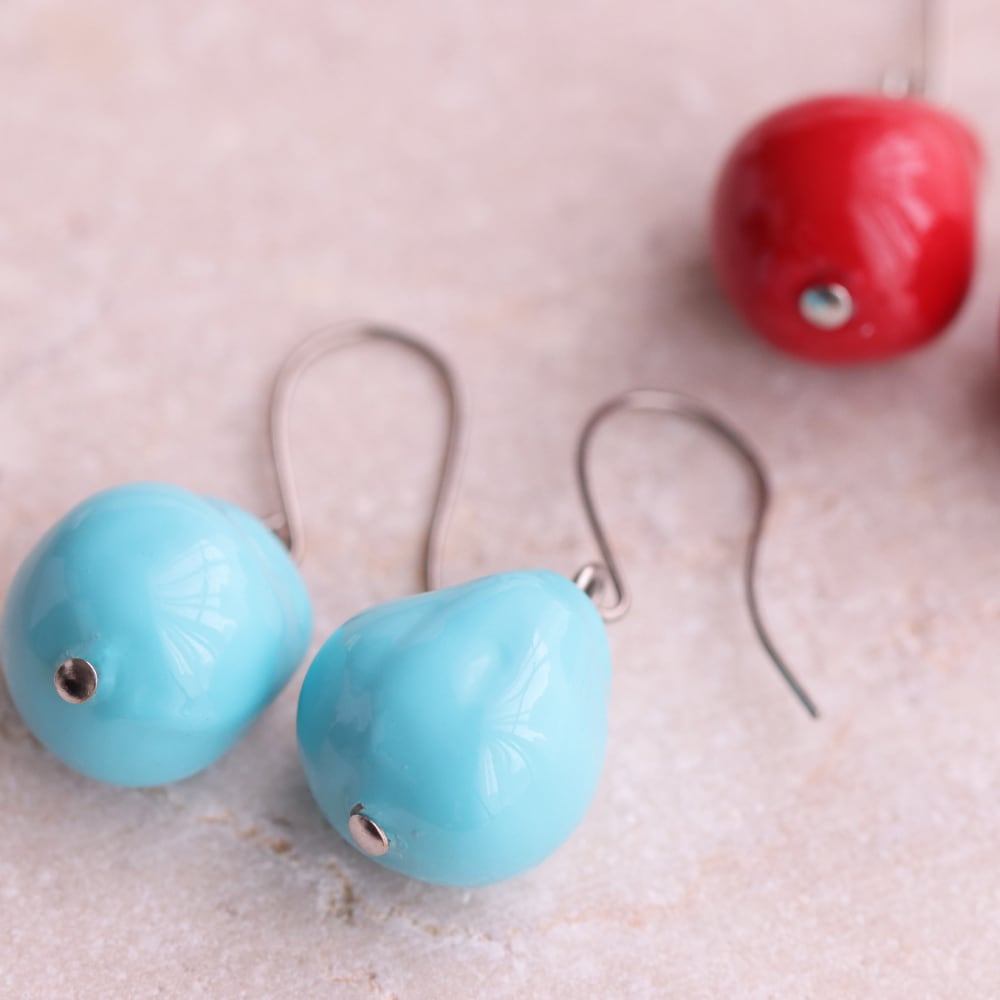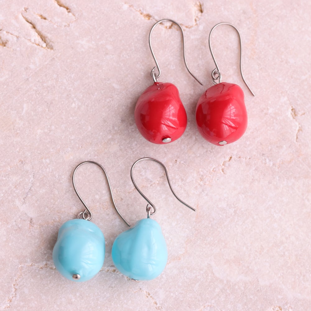 ころんと丸みを帯びたフォルムが可愛らしい、キャンディのようなピアス「フルーツフォンデュ」。