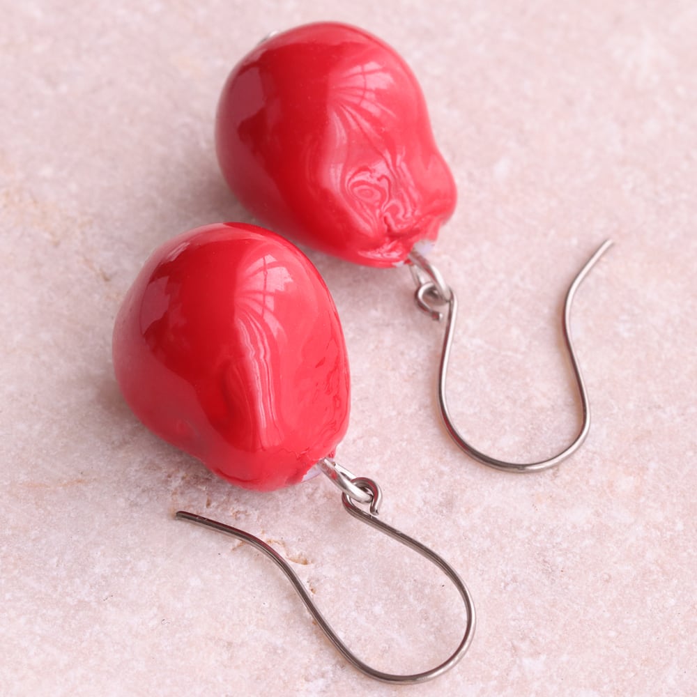 みずみずしい完熟イチゴを思わせるジューシーなレッド。耳元に甘く鮮やかなアクセントを添えて、気分まで明るくしてくれる華やかなカラーです。