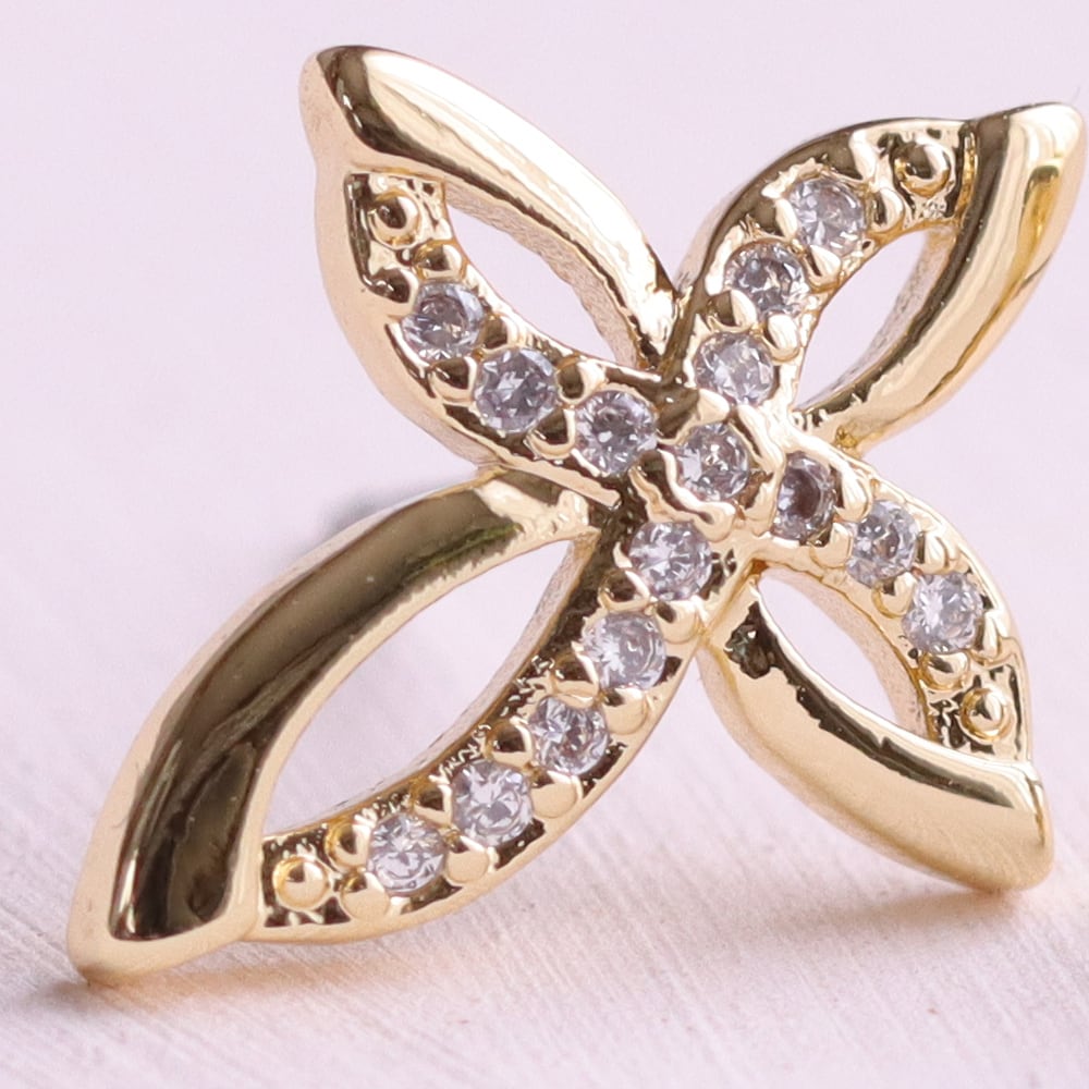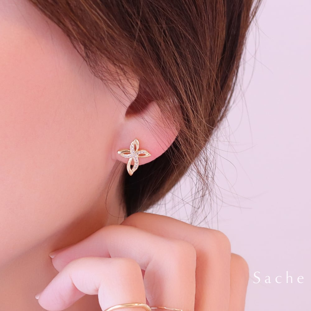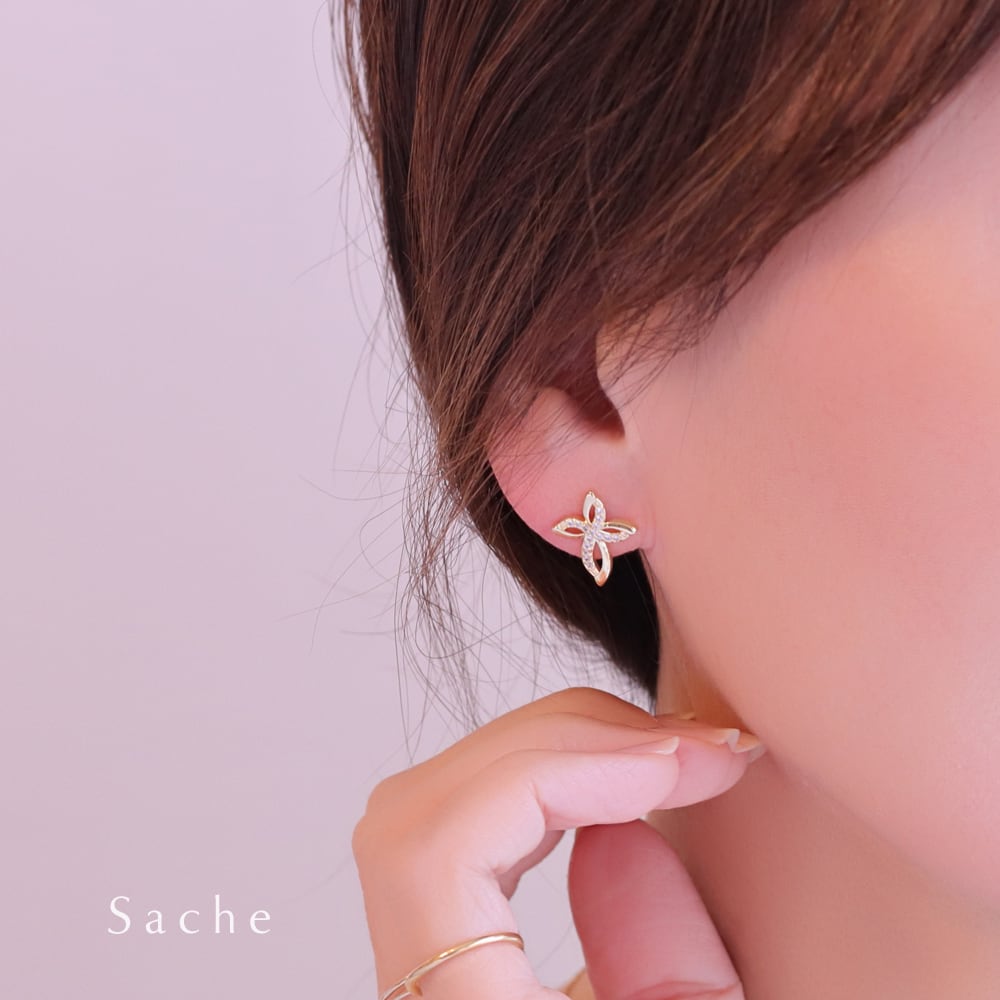 花びらのようにも、クロスモチーフのようにも映るそのシルエットは、身につける人の雰囲気に寄り添いながら、静かに個性を引き立ててくれます。