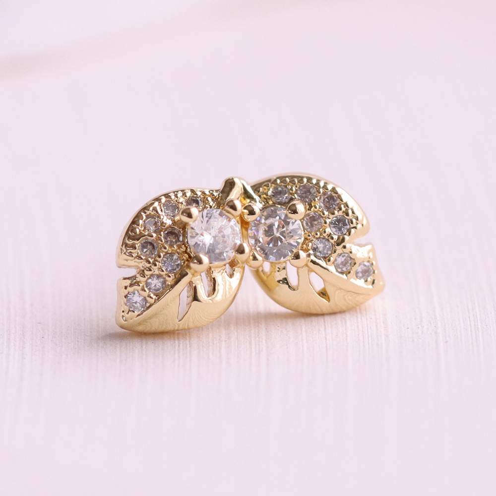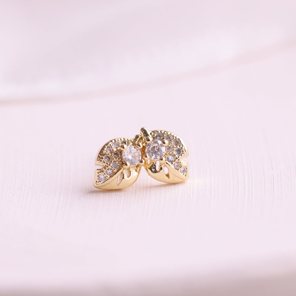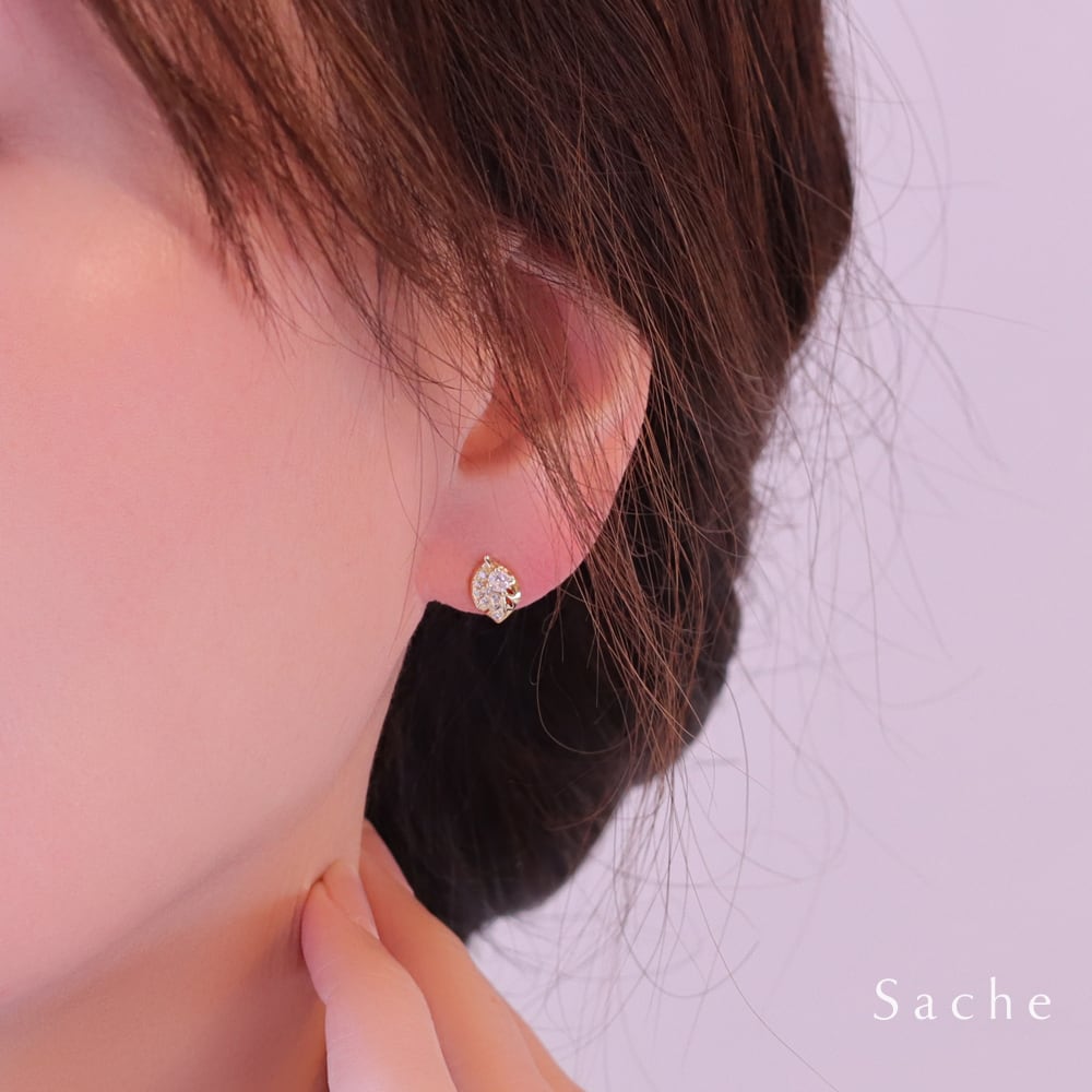 繊細なリーフデザインに、きらめくストーンをあしらったLieve(リーフェ)は、自然の優しさを感じさせる小さめピアス。