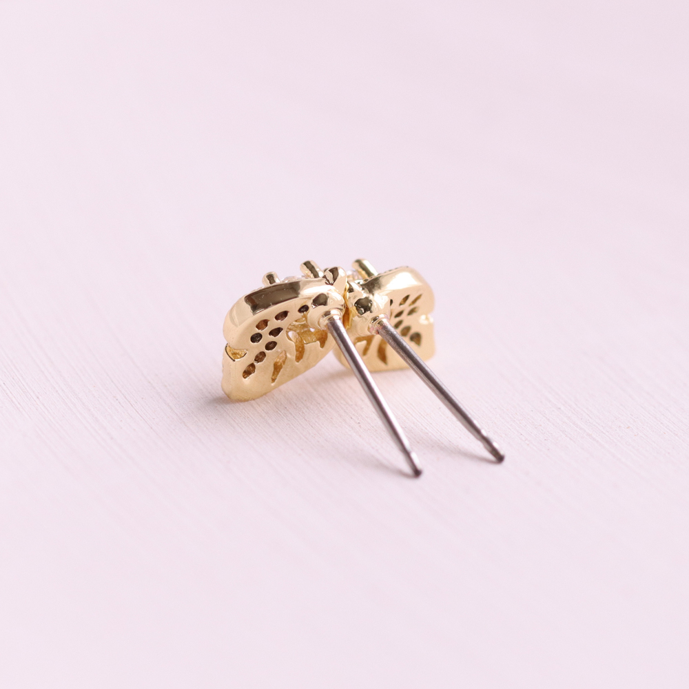 葉っぱモチーフの上に敷き詰められたパヴェストーンが、繊細な輝きを放ち、耳元に上品な印象を与えます。
