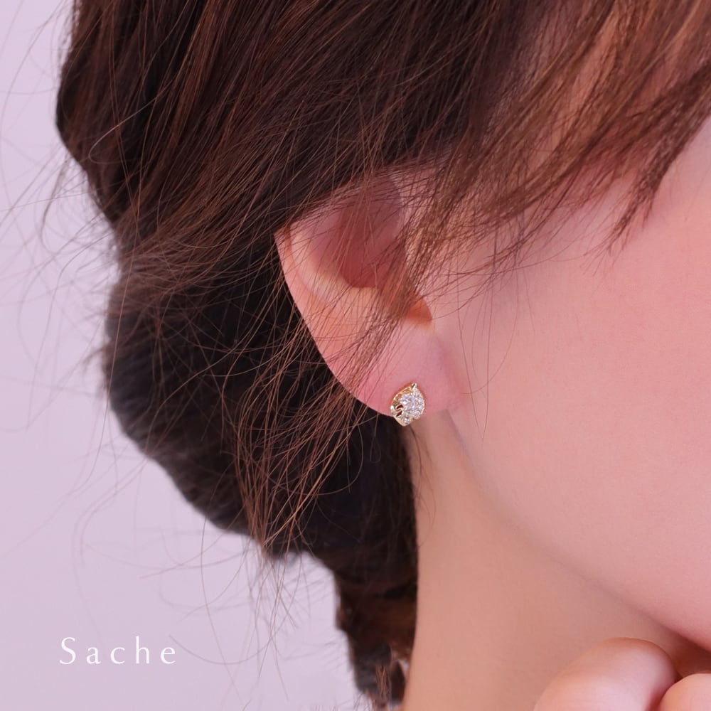 ピアス裏面には小さな抜き模様を施し、パヴェストーンに光がしっかり届くよう設計されています。
