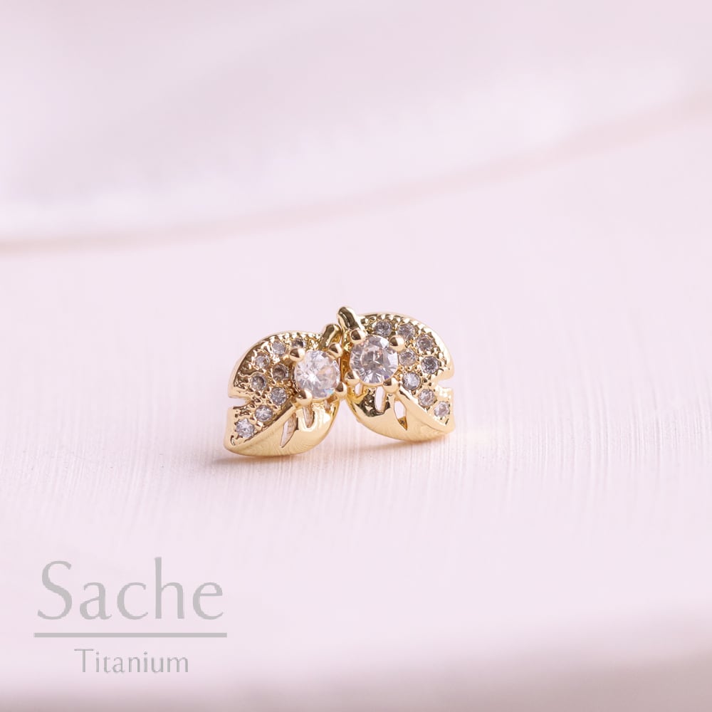 純チタン ピアス 金属アレルギー 小さめ 葉っぱ リーフパヴェ ゴールド サシェ sache 超敏感肌用/商品名:【純チタンピアス】Lieve(リーフェ)
