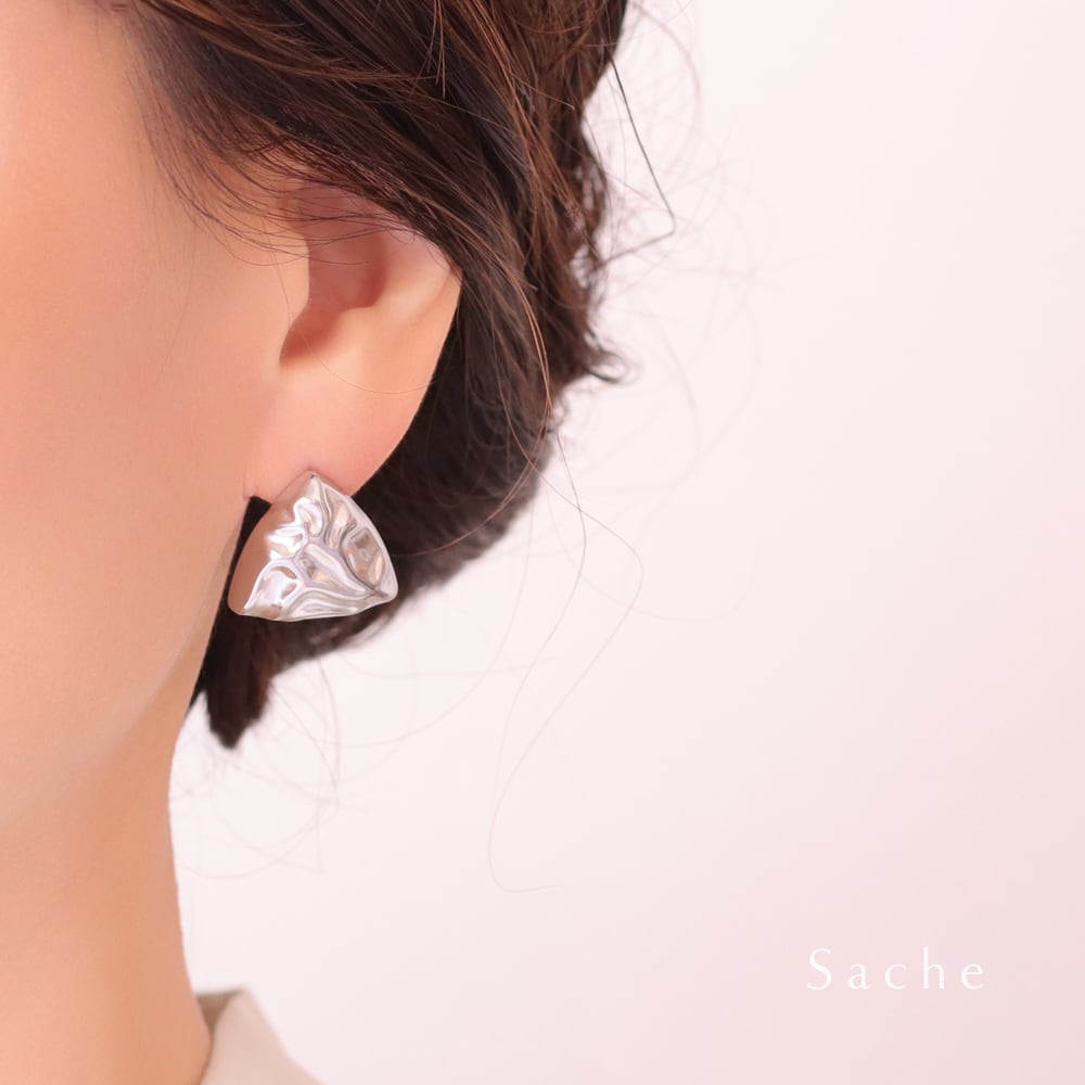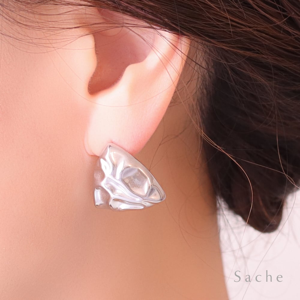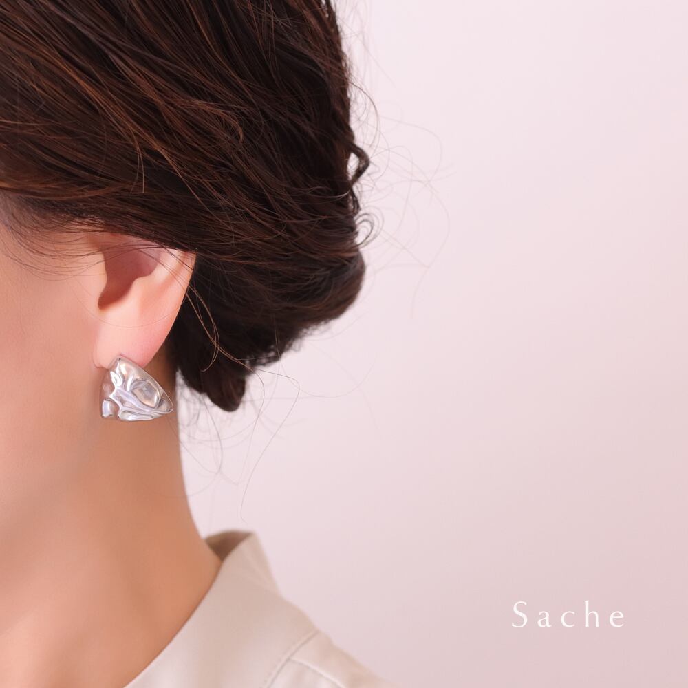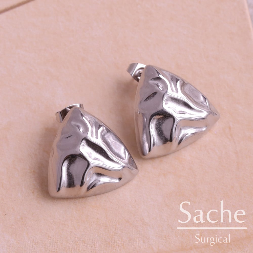 金属アレルギー対応 ピアス 三角 トライアングル ボリューム シルバー サシェ sache 敏感肌用 ピアス/商品名:【サージカルステンレスピアス】Heidi(ヘイディ)