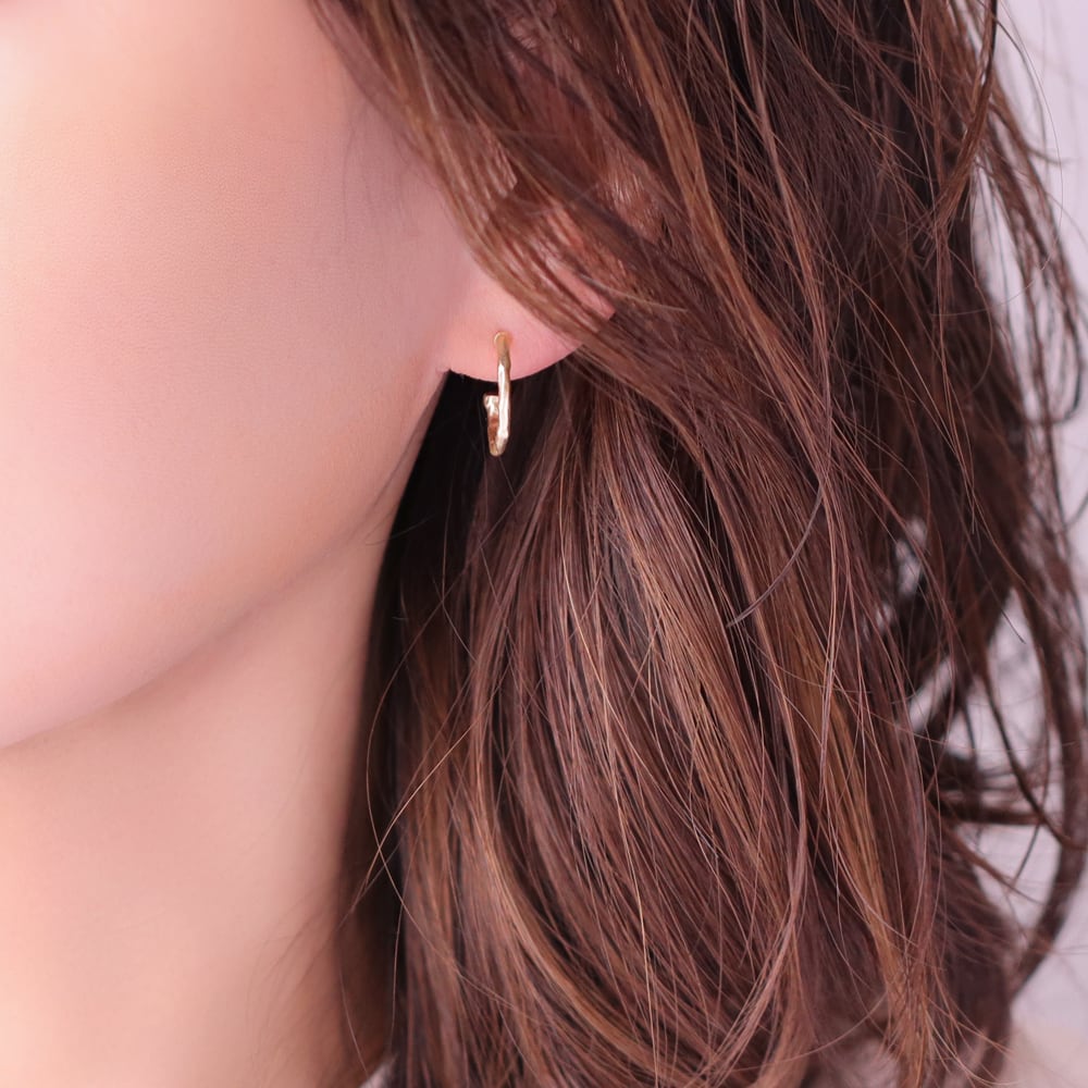 直径(全長)約14mmのハーフフープ形状は、耳元にさりげなく寄り添う小ぶりで使いやすいサイズ感。