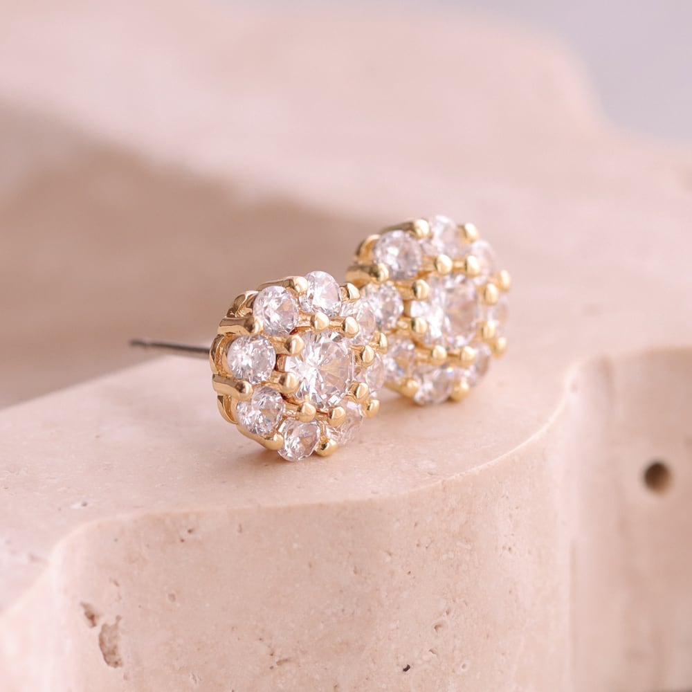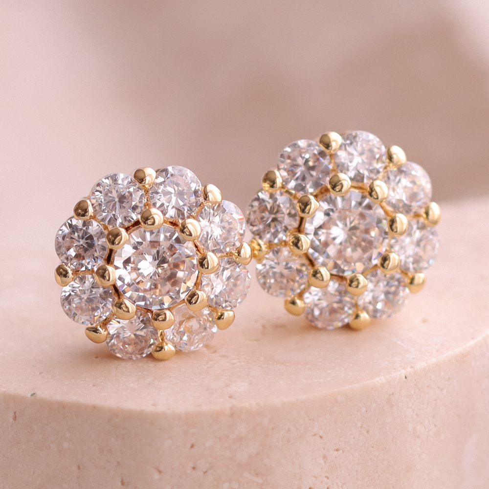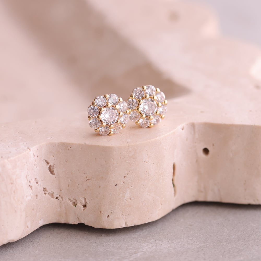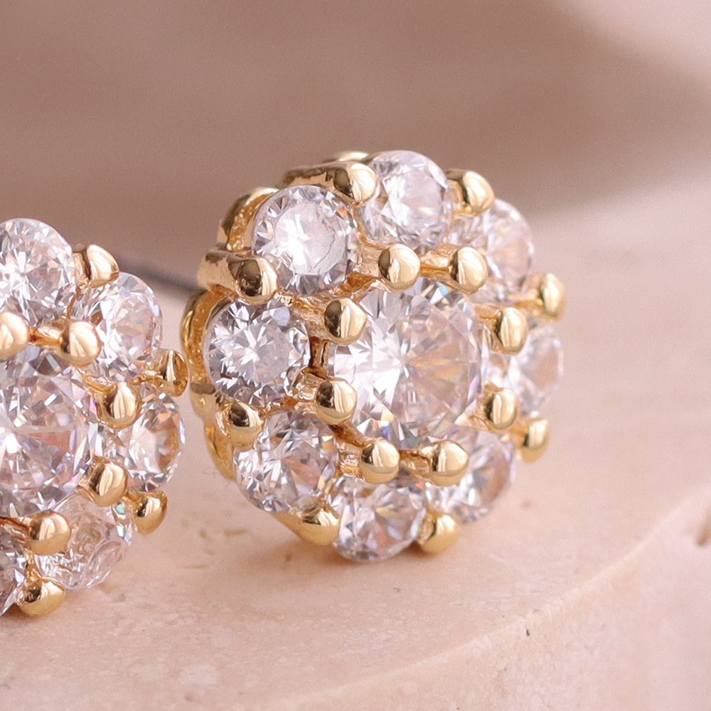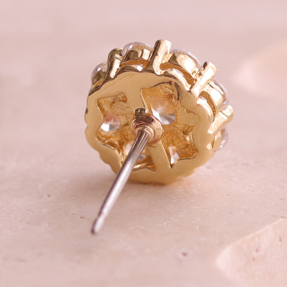 中央の大きなクリスタルを、小さなクリスタル8粒がぐるりと囲む華やかなデザイン。中心の澄んだ輝きを引き立てながら、外側の8粒が花びらのようなやわらかな輪郭を描きます。